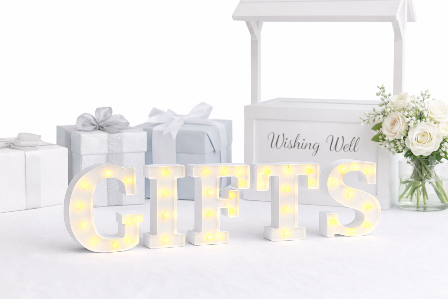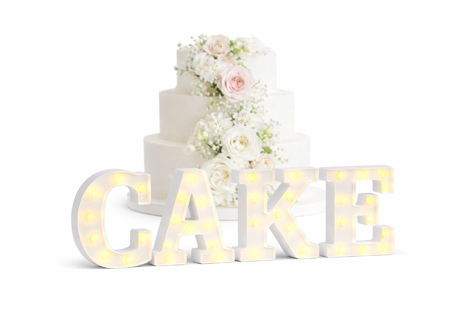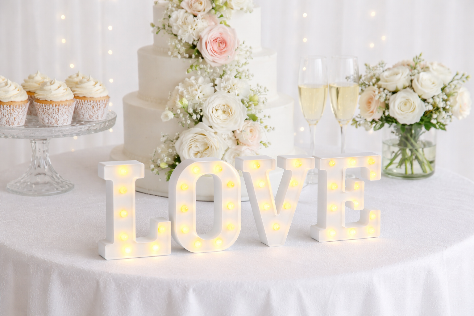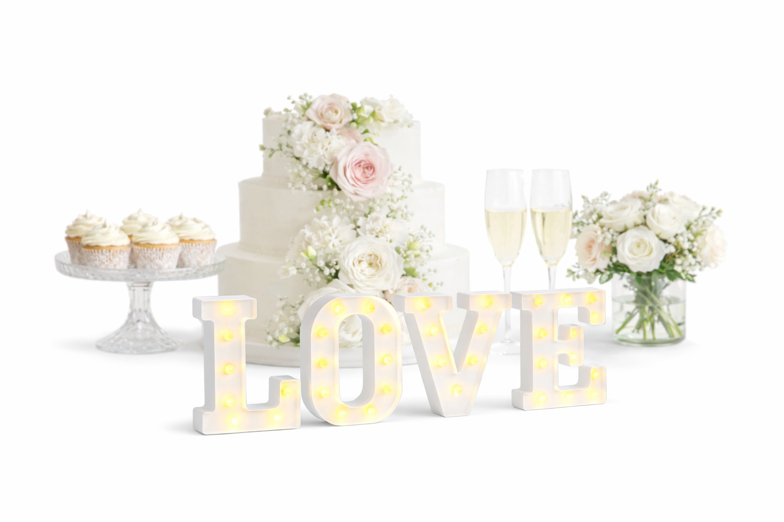 Add a warm, glowing touch to your event styling with our small light-up tabletop letters — the perfect finishing detail for cakes, dessert tables, gift tables and feature displays.