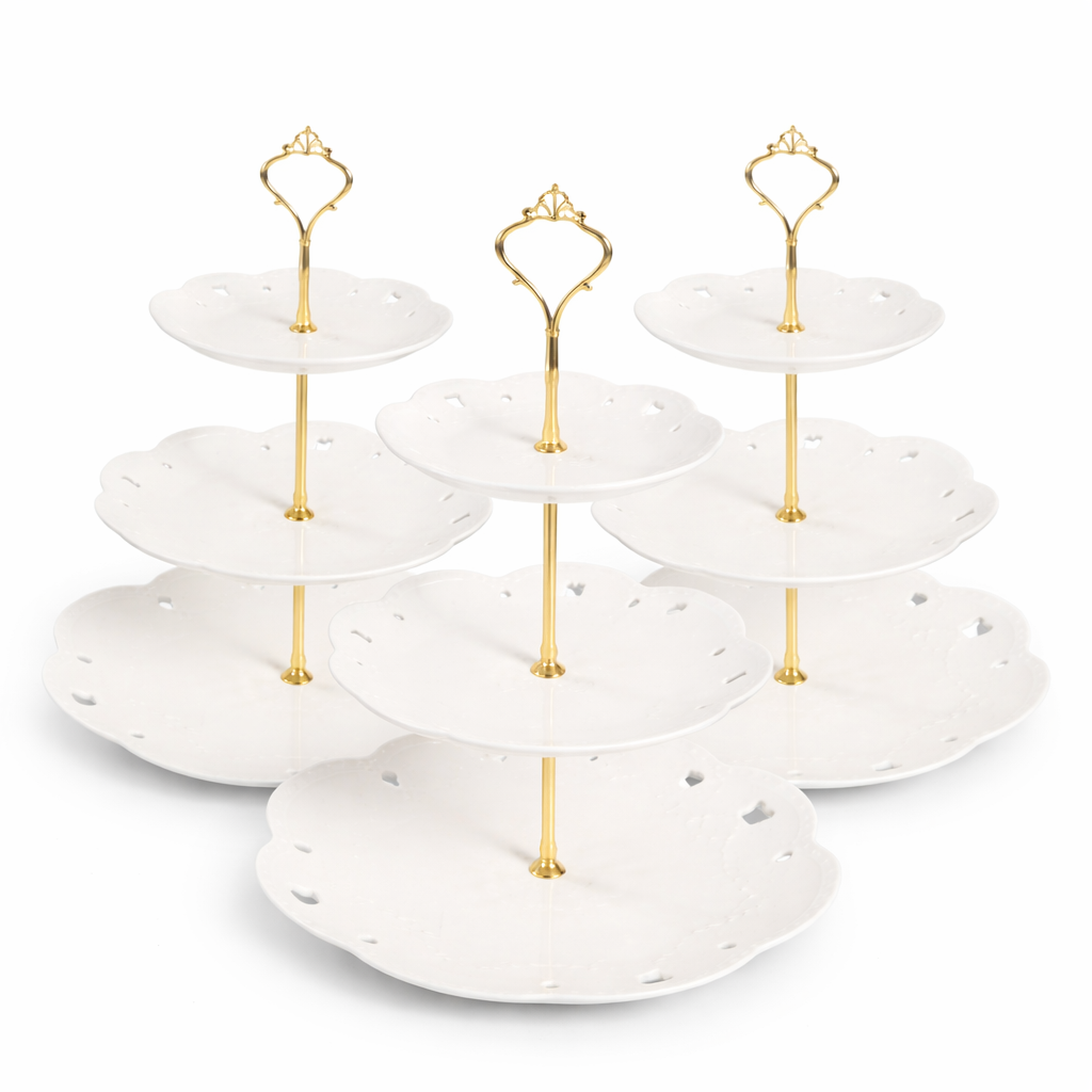 Serve your sweets in style with our elegant 3-tier high tea stands – perfect for baby showers, bridal teas, birthdays or any occasion that calls for a touch of class.
