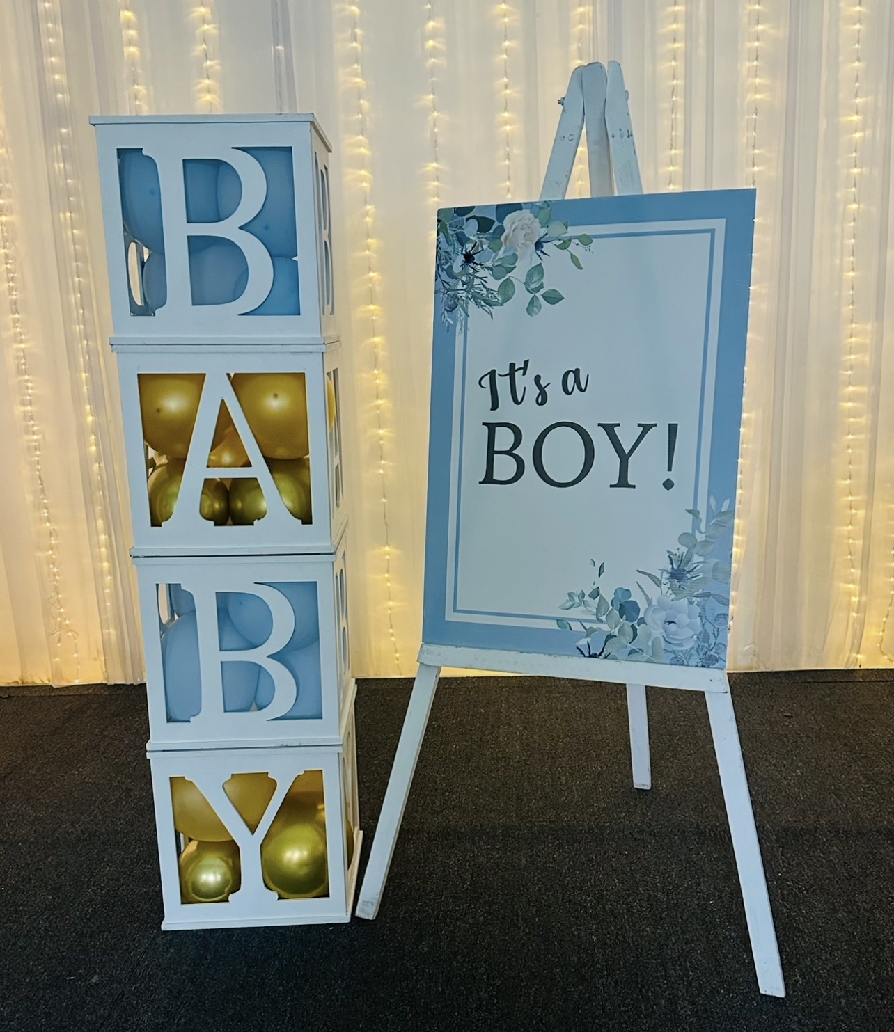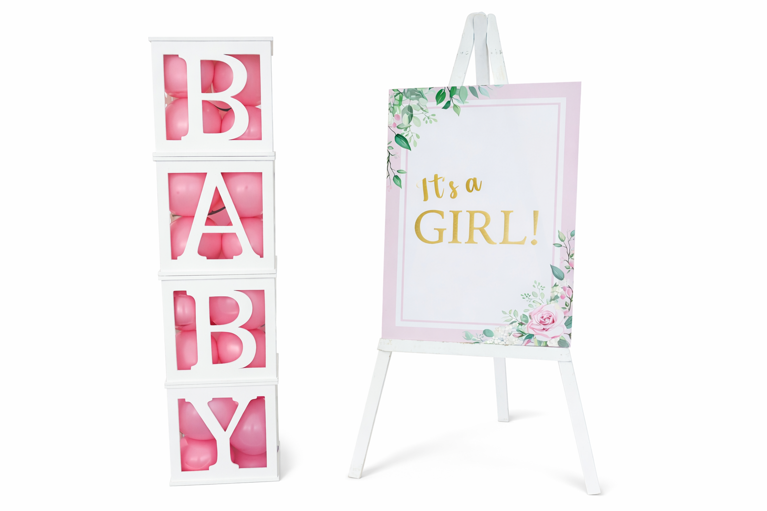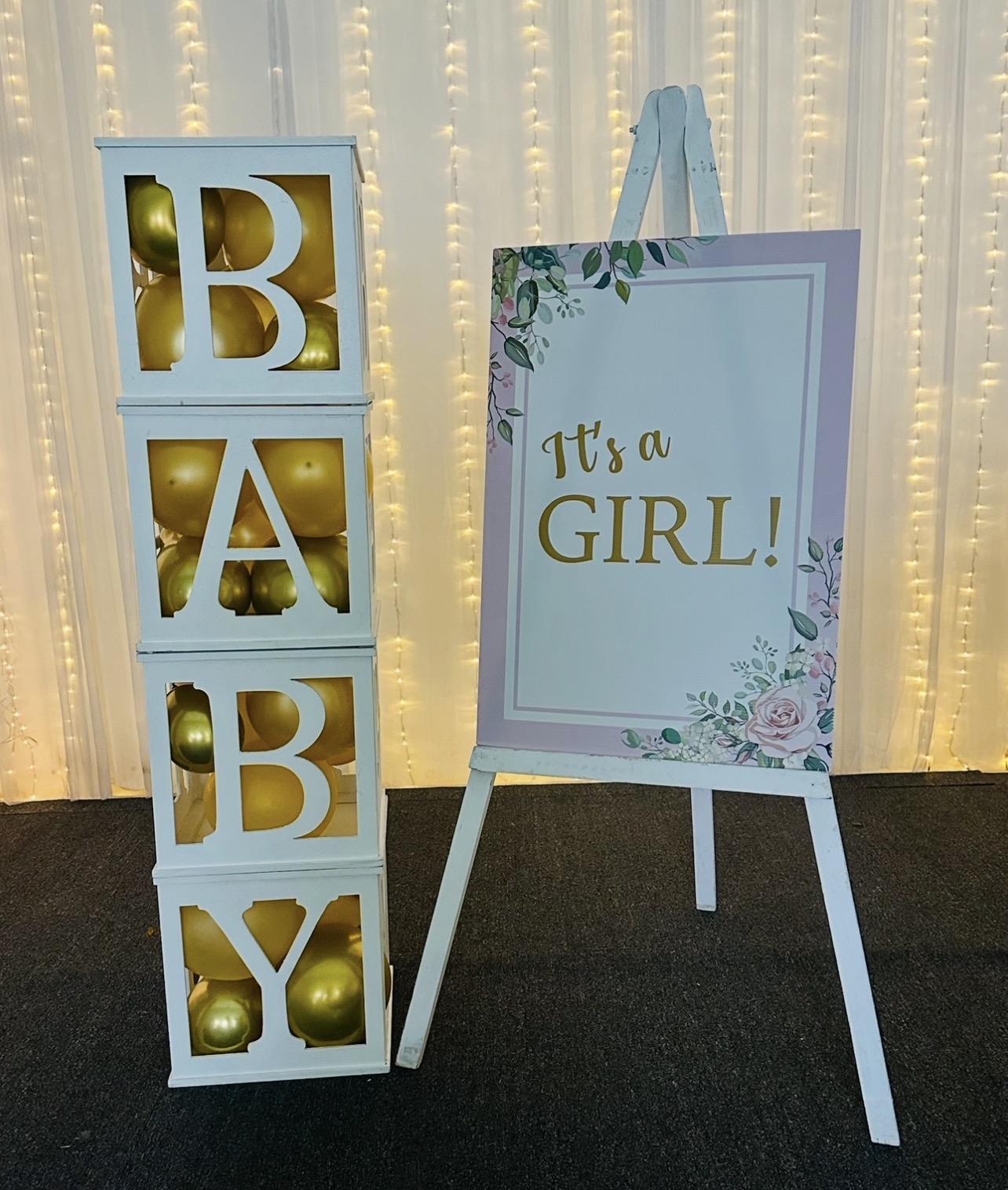 🌸 1 x white easel stand with an elegant “It’s a Girl” ‘ it’s a boy’ or ‘baby shower’ sign