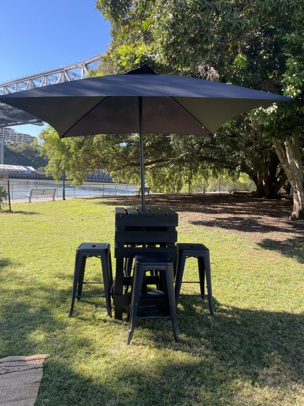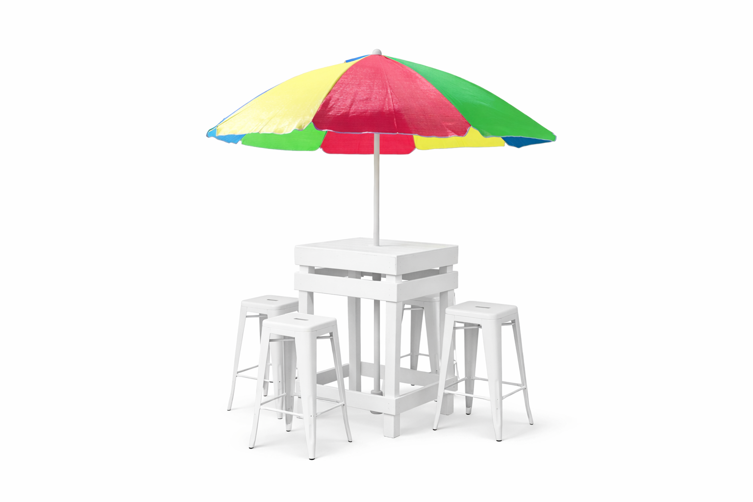 Includes your choice of black or white budget stools – black, stone or colourful umbrella — shade with a sleek, clean look. PLEASE WRITE IN NOTES YOUR PREFERENCE