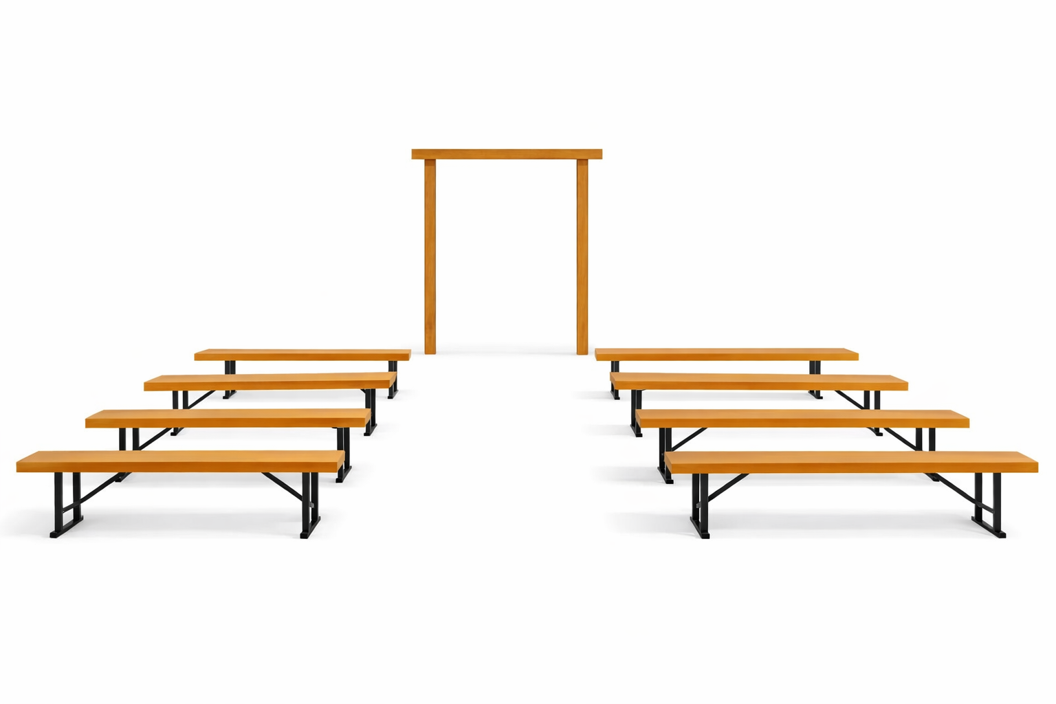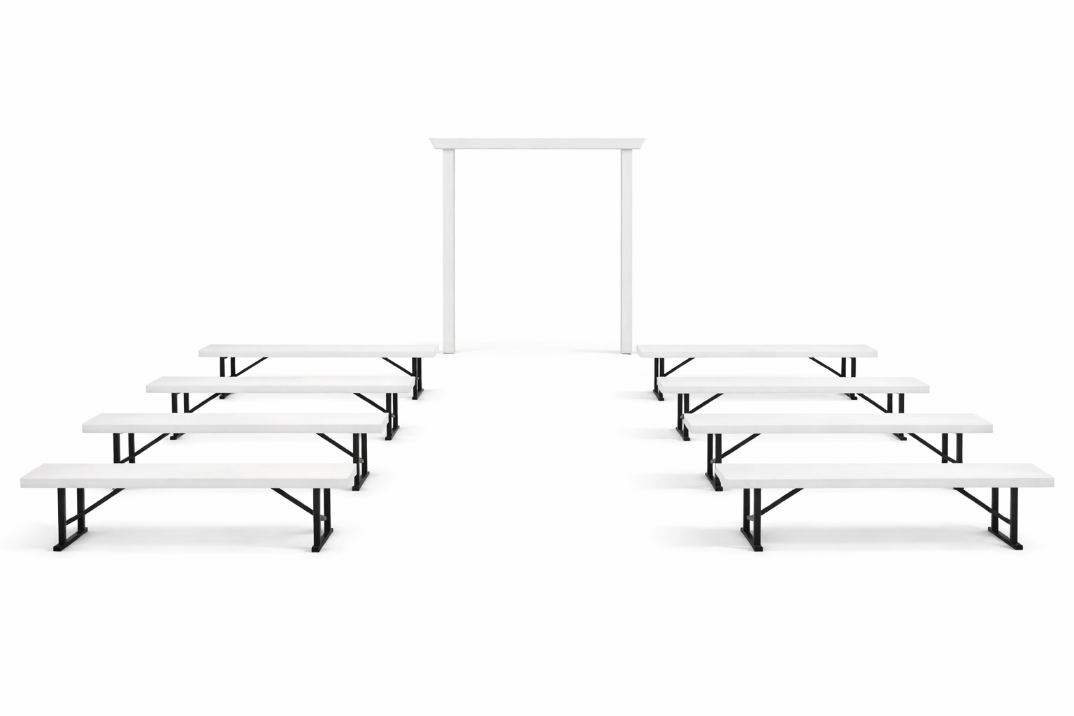 Create a beautiful, modern ceremony setting with our rustic or white bench seating and matching arbour. This package is designed for quick setup, easy transport, and a clean, timeless look — perfect for beach, garden, farm, or marquee weddings.