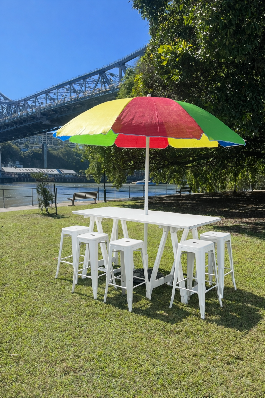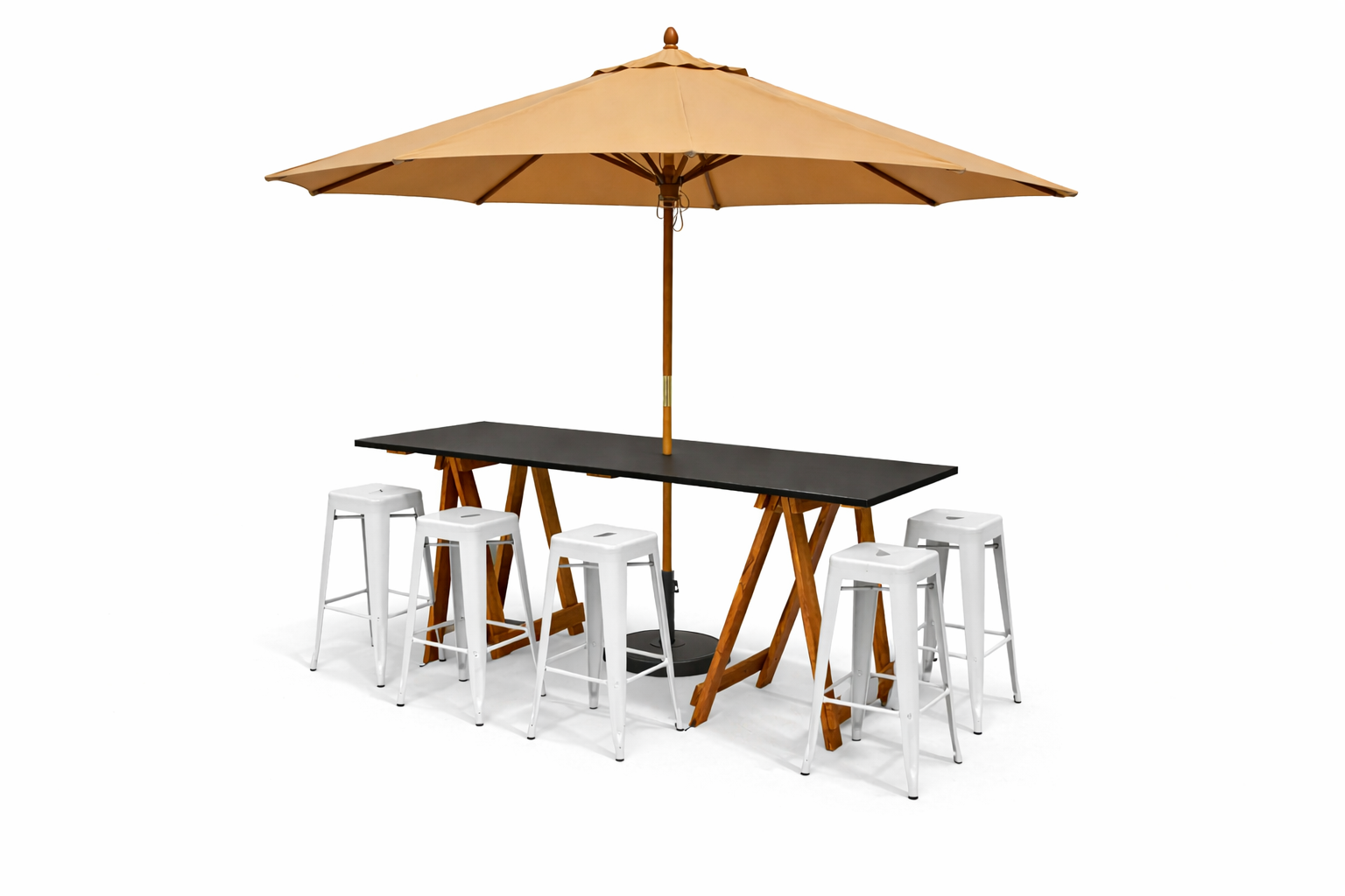 Grazing / Bar Table + Umbrella & Stools Hire Bundle